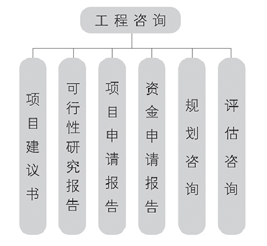 工程咨詢:項目建議書、可行性研究報告、項目申請報告、資金申請報告、規劃咨詢、評估咨詢。